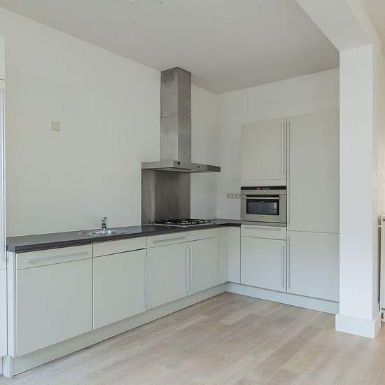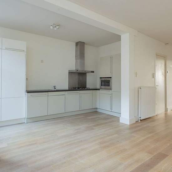 Delightfully bright apartment (approx. 60 m²) with one bedroom in the popular Oud-West neighborhood. Walk-through: Via the communal entrance you take the stairs to the apartment on the 2nd floor. Upon entering you step into the bright living room with open kitchen and a charming French balcony. The living room offers enough space for a nice dining table for convivial dinners with family or friends and a cozy lounge area. The open kitchen is equipped with all necessary appliances. The bedroom is located at the rear and provides access to the ...