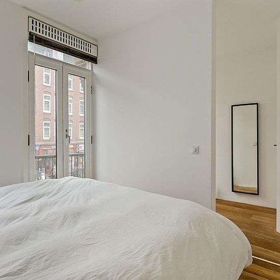 Beautiful two-bedroom apartment of 58 sq.m., situated on the first floor along the vibrant Kinkerstraat. The apartment offers a comfortable layout with two bedrooms, a bathroom, a separate toilet, and a spacious living room with direct access to a generous balcony. The sunny balcony, seamlessly connected to the living area, creates a pleasant and private outdoor space, ideal for relaxing or entertaining. Kinkerstraat is a lively and highly sought-after street in Amsterdam Oud-West, known for its wide variety of shops, cafés, and local hotspo...