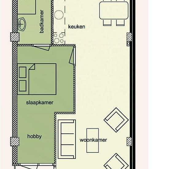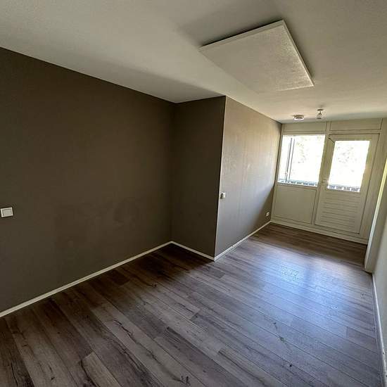 Available from April 1: spacious modern two-room apartment with a balcony in the center of Emmen. The apartment is equipped with a modern kitchen and fitted with a modern bathroom. Layout Ground floor: central hall/entrance, staircase and elevator. Second floor: hall, toilet, entrance to living room with open kitchen equipped with a cooktop, extractor hood and refrigerator, balcony (access via living room and bedroom), bedroom, bathroom with shower enclosure and washbasin, separate toilet, storage room with washing machine connection. Gene...