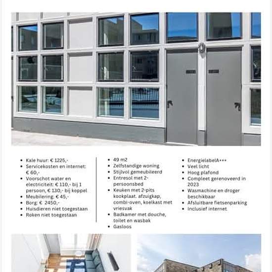 Charming 1‑bedroom for rent from April 1st – Burgemeester Michiels van Kessenichpassage (near the Groene Loper) A beautiful and stylishly furnished 49 m² apartment will be available for rent from April 1st, located on Burgemeester Michiels van Kessenichpassage, close to the Groene Loper. The apartment is situated in a former school building, offering high ceilings and large windows that create a bright and spacious living environment. Rental details: • Base rent: €1,225 per month • Advance payment for water and electricity: €110 for 1 pe...