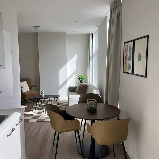 For rent: Furnished apartment for temporary rental on Tamboerstraat Rent: €1,400, excluding utilities and VAT Available: 15 January 2026 Rental period: 3–6 months Condition: Furnished Comfortable living in a modern apartment with a practical layout, located in a characterful and green urban neighborhood near the center of Rotterdam. Highlights: – Newly completed – Furnished – Lively, green surroundings – Energy label A+(+) – Ideal as a temporary housing solution The property: The apartment features a bright living room with an open kitch...
