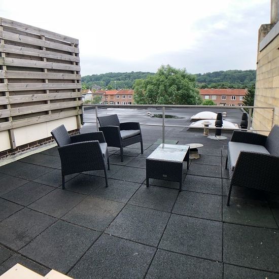 Move-in ready, well-maintained, 1-bedroom apartment with spacious private roof terrace and private storage in the beautiful Houthem near Valkenburg. This apartment is located on the first floor and has a bright living room with open kitchen of respectively 20m2. The neat kitchen layout includes a built-in refrigerator, 4-burner stove, oven, and extractor hood. Compact bedroom (8m2) with access to the spacious roof terrace. The modern bathroom is equipped with a shower, sink, and toilet. Details: - Suitable for occupancy by 1 person. - This a...