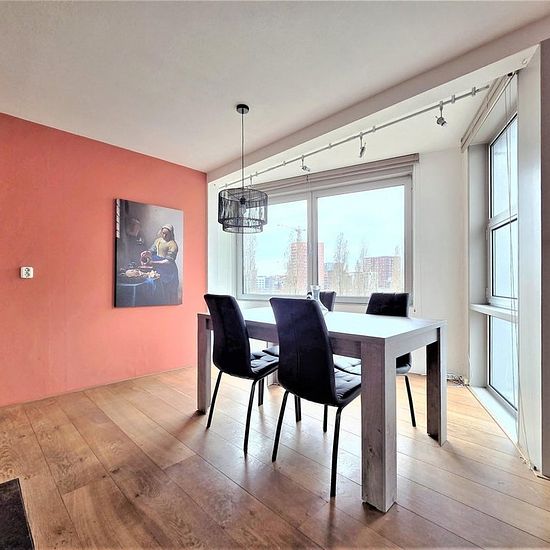 Renting half an apartment with a large bedroom, large window, fully furnished, bed, cupboards, desk, everything available. The residence has a large living room and bathroom. The residence is fully furnished, there is a TV and furniture. In the kitchen, everything for cooking is available, also a coffee machine, plates, glasses, cutlery, ... The living room gets sun all day, large windows. There is a parking space for a car available. Shopping center and park, water/lake are within a 1-minute walking distance. By tram, you are within 5 m...