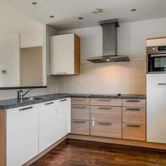 Centrally located, near the centre of Aalsmeer, we offer this spacious three-room corner apartment (104 m²) for rent. The apartment, which includes a storage room and a covered parking space, is situated on the first floor of the apartment complex. Thanks to the corner position, the living room features a bay window, providing extra views and more natural light. Through the communal entrance with mailboxes and doorbell/intercom panel you enter the shared hallway, from where you can take the lift or stairs to the first floor. Layout: From th...