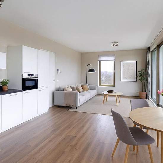 In the residential complex 'De Fred', completed in 2018, which radiates luxury and warmth, we offer this partially furnished three-room apartment of 97 square meters for rent. The property is located on the 7th floor of the building and is of course accessible by elevator. The apartment is finished to a high standard and has also been recently painted. If desired, a parking space in the underground garage can be rented additionally. Location De Fred is a modern and attractively designed apartment complex consisting of three buildings, one o...