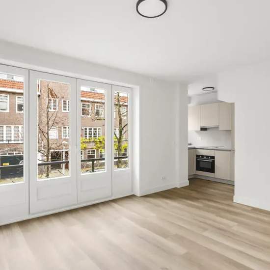 Leimuidenstraat 45-1 – High-quality renovated 3-room apartment In a quiet, popular street in Amsterdam we offer this apartment, completely renovated in 2025. The property has been renewed down to the smallest detail, fitted with modern finishes and carries an energy label A. The apartment features two well-proportioned bedrooms, ideal for house sharers or for anyone looking for an extra room as a home office or guest room. The bright living room connects seamlessly to the new kitchen, which is equipped with high-quality built-in appliances....