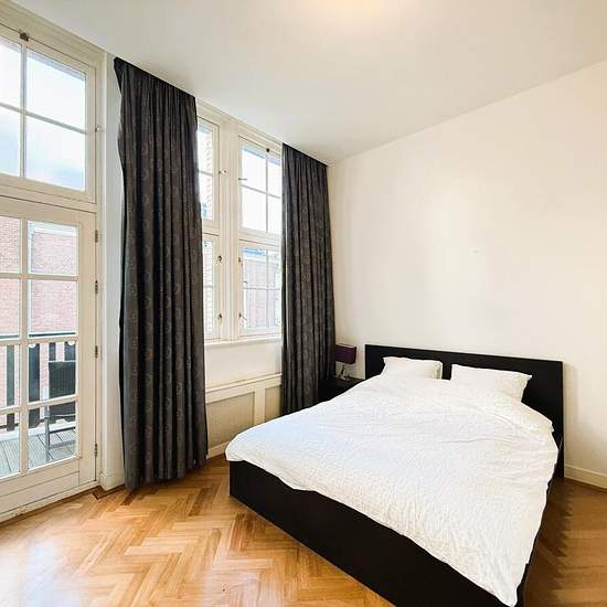 Situated in a fantastic location in the imposing building "Den Grooten Heer", we offer this luxurious and fully furnished 2 bedroom apartment. In the basement of this building there is a swimming pool, sauna, solarium and communal terrace that all residents can use!Layout: Central entrance with intercom and access to the very beautiful atrium from where you reach the second floor by elevator. Entrance of the apartment with access to the living room with semi-open kitchen, equipped with all necessary appliances. Separate room with washing mac...