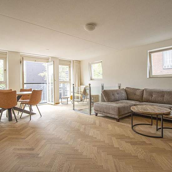 Bloemgracht, Amsterdam / city centre (approx. 75 m²) €2,950, excluding G/W/E (gas/water/electricity) In a prime location in the centre of Amsterdam is this authentic two-room apartment, which is fully furnished. On the second floor is the spacious living room. It offers a stunning view of the canal and the Westerkerk and features a beautiful wooden herringbone floor and a cosy fireplace. A staircase leads down to the open-plan kitchen/dining area, which is fitted with every convenience. There is also a toilet on this floor. In the basement i...