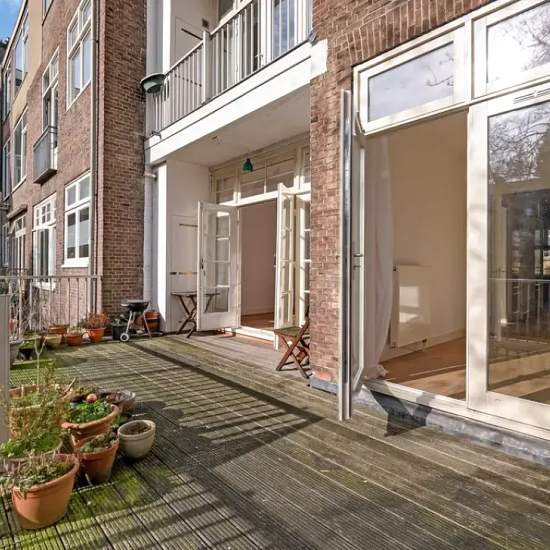 For English see below Luxury and bright apartment with two spacious bedrooms, high ceilings, energy label B and a generous roof terrace facing southeast. LOCATION & ACCESSIBILITY You live in an absolute prime location in the beloved Oud-Zuid, a neighborhood known for its fantastic atmosphere, excellent restaurants and luxury shops. Want to experience Amsterdam at its best? This is the perfect base to enjoy everything the neighborhood and the city have to offer. Vondelpark is literally around the corner and within a few minutes by bike you ar...