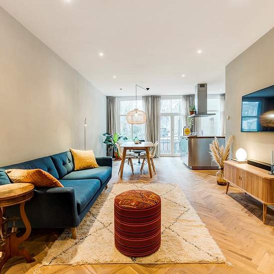 Beautifully renovated apartment close to the center of Amsterdam This turn-key furnished 2-bedroom apartment of 64 m2 (not NEN2580 measured) is centrally located next to the beautiful northern part of the ever-famous Jordaan area and the center of Amsterdam. In this apartment, you will feel right at home. Layout You enter the apartment on the first floor via the communal staircase into the spacious living room. At the rear of the apartment (sunny south side) you will find the beautiful open-plan kitchen and dining area with patio doors. The...
