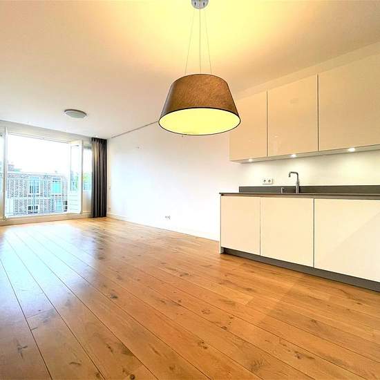 This luxuriously renovated 2-bedroom apartment with air-conditioning, modern kitchen and bathroom, balcony and spacious roof terrace is situated in a beautiful location in ‘Oud-Zuid’, close to the Concert hall, Museum square and the Vondelpark.Layout: Central entrance on the ground floor. Stairs to the third floor with entrance to the apartment and stairs to the 4th floor. Hallway which gives access to the living room. The bright living room offers access to the balcony at the rear of the apartment through double doors. The modern open k...