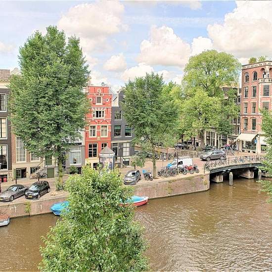 Situated in a fantastic location in the famous and imposing building "Den Grooten Heer", we offer this luxury furnished 2-bedroom canal apartment with two bathrooms, an elevator and a magnificent panoramic view over the Herengracht canal. The complex features a swimming pool, sauna and a private parking space in the basement. Central entrance with intercom and a beautiful atrium that provides access to the elevator. Entrance to the apartment on the first floor with a spacious hallway with cloakroom and access to the generous living room wit...