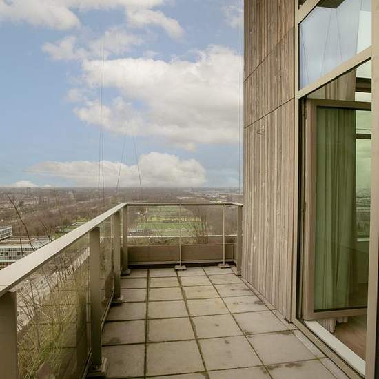 De ware hotelbeleving. Zeer exclusief dubbellaags hoekappartement van 87 m2 met een terras op de 14e etage van Vertical. Het luxe afgebouwde appartement wordt verhuurd inclusief stoffering, fietsstallingsplaatsen en desgewenst een parkeerplaats. De woning heeft een woonkamer met open keuken van ca. 40 m2 met ramen over twee etages op de hoek en twee slaapkamers. Het terras op het zuidwesten is ca. 10 m2. Wonen in Vertical, met name op hoogte, is een on-Nederlandse ervaring. De beleving en uitstraling van het gebouw, de vergezichten, de gaste...
