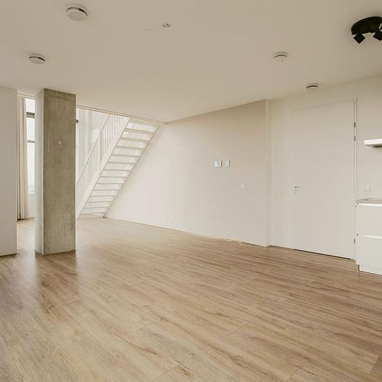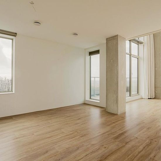 De ware hotelbeleving. Zeer exclusief dubbellaags hoekappartement van 87 m2 met een terras op de 14e etage van Vertical. Het luxe afgebouwde appartement wordt verhuurd inclusief stoffering, fietsstallingsplaatsen en desgewenst een parkeerplaats. De woning heeft een woonkamer met open keuken van ca. 40 m2 met ramen over twee etages op de hoek en twee slaapkamers. Het terras op het zuidwesten is ca. 10 m2. Wonen in Vertical, met name op hoogte, is een on-Nederlandse ervaring. De beleving en uitstraling van het gebouw, de vergezichten, de gas...