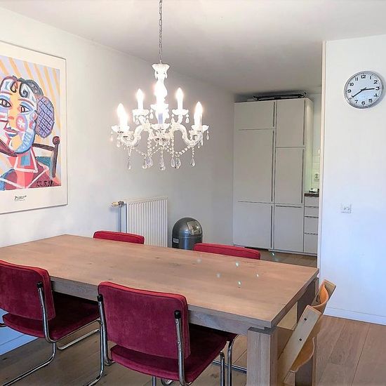 This spacious and modern furnished two bedroom apartment on the first floor has a balcony and storage and is located in Amsterdam East.Layout: Central entrance with elevator and stairs to first floor. Hall with access to all rooms. Spacious and attractively furnished living room with comfortable seating and dining area. The living room is very light through the many windows and has direct access to the balcony through a sliding door. The open kitchen is fully equipped with a fridge, freezer, microwave, dishwasher, induction cooker with extra...