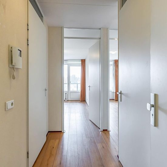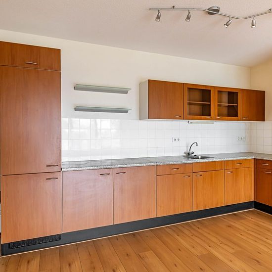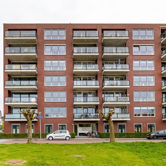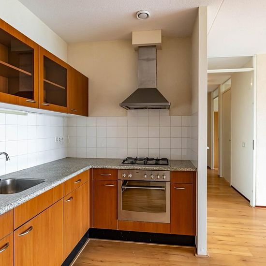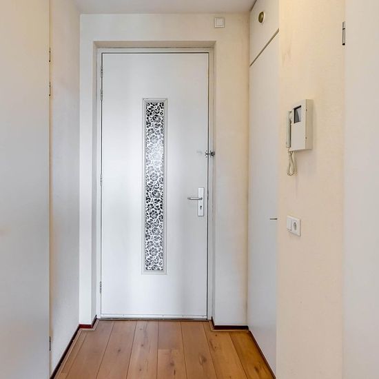 Spacious apartment on the first floor with 2 bedrooms and a large balcony. Within cycling distance of the city center and walking distance to a small shopping center and public transport. The ring road can be reached in a few minutes. The apartment has its own locked storage room. The layout is as follows: Ground floor; spacious hall, storage room with central heating system, toilet, 2 bedrooms of 14m² and just over 10m², separate toilet, bathroom equipped with shower corner and sink, bright living room with open kitchen of approximately ...