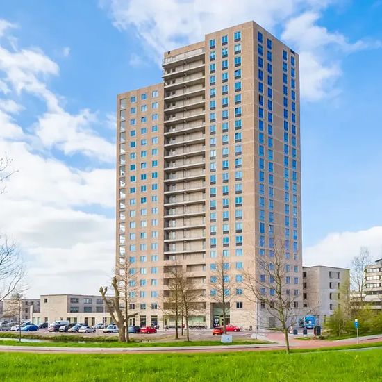 3-room apartment with balcony (21st floor) On a former school site of the ROC on Leidsedreef in Leiderdorp, the ‘Engelendaal’ project has been realized. A complex with 104 comfortable apartments ranging in size from 70m2 to 101m2. All homes are equipped with an external storage room. This stylish, slender tower of 70 meters high is located in a beautifully landscaped public space with a central green area. LAYOUT: - Approx. 77 m2 - Spacious living room with open kitchen - 2 bedrooms - Luxuriously finished bathroom with walk-in shower and sep...