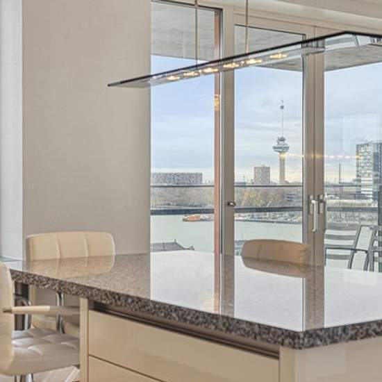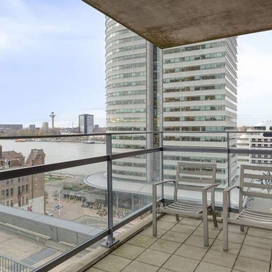 Welcome to this impressive 160 m² top-floor apartment on the 10th level, where space, comfort, and panoramic views come together. Built in 2005, this modern residence offers a bright and luxurious atmosphere, perfect for anyone seeking a stylish home in one of Rotterdam’s vibrant areas. The expansive 80 m² living room provides plenty of space for both relaxing and entertaining, while the large windows fill the apartment with natural light. With three generous bedrooms, this home offers flexibility for families, guests, or a comfortable work...
