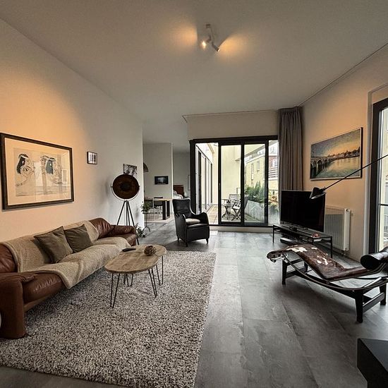 Stylishly furnished loft apartment located in a beautiful location in the center of Valkenburg. The luxurious loft is equipped with all conveniences including a private elevator directly to the apartment and an underground parking space. It is a modern apartment with energy label A and solar panels. Available for one household. Layout: Ground floor: Hall/entrance with doorbell panel and mailboxes. Access to the basement with a private elevator that gives direct access to the apartment. First floor: Upon entering, you step into the spacious l...