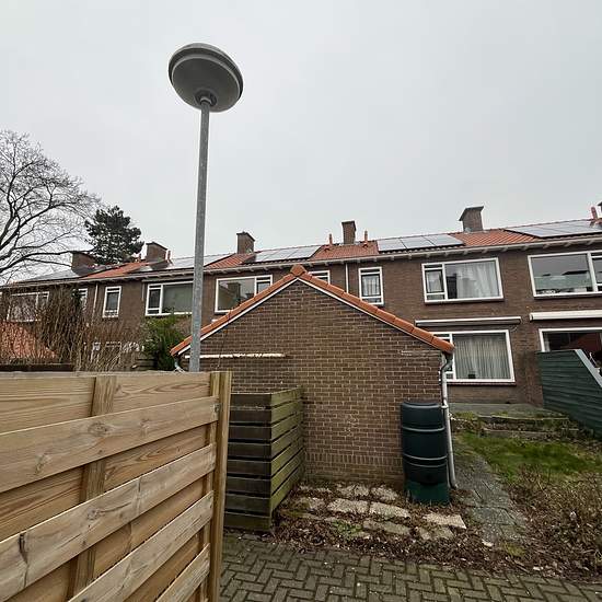 About this property This property at Ds Heldringlaan 31 Small single-family house with south-facing garden Ground floor: hall, living room (25 m2), kitchen (5 m2), toilet, garden with storage shed 1st floor: 3 bedrooms (13 m2, 12 m2 and 5 m2), loft accessible by ladder. Cooking is electric. Windows are double-glazed. Walls are ready to be wallpapered. Private central heating combi boiler. Solar panels. Kitchen has been renovated. Floors are wood. You can read more about the delivery condition of this property here: rijswijkwonen.nl/Me...