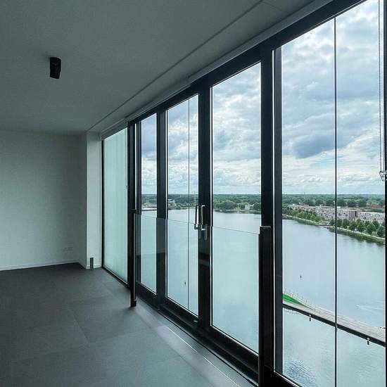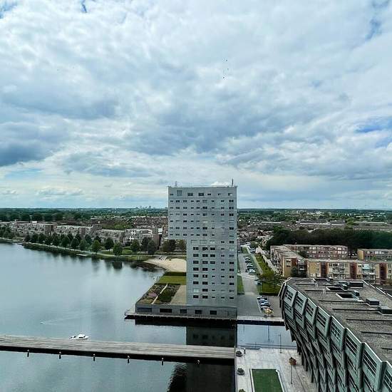 Right in the center of Almere, in an absolute prime location on the Weerwater, in the striking residential towers of Side by Side you will find this luxurious apartment on the 13th floor with 3 spacious bedrooms, storage room and optional private parking space in the underground garage, on the ground floor. The fitness room is at your disposal on the ground of Side by Side. Here you will also find a meeting room for residents. Everything within walking distance of the best city center in the Netherlands. From the house you look over the IJme...
