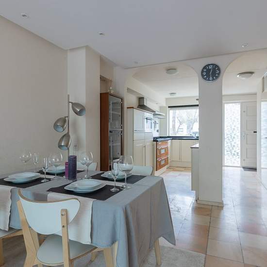 Description Mechelensingel in Amsterdam Are you looking for a pleasant home in a quiet, green location in Amsterdam? This bright house in Nieuw-Sloten features a spacious living room, a modern open kitchen, three bedrooms, a large bathroom and a sunny garden. A lovely place where you can live comfortably with all amenities within reach! LAYOUT You enter through the entrance with the meter cupboard, toilet and access to the living room. The living room is generous and enjoys plenty of natural light thanks to the large windows. There is enough...
