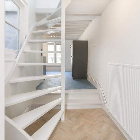 Recently renovated apartment, divided over two floors with a roof terrace and an amazing view over Prinsengracht and the picturesque square with the ancient Noorderkerk, a church built in 1623. The Noordermarkt is the centre point of the Jordaan. This renovated apartment with one bedroom is fully equipped with window coverings, in a national monument and associated with authentic elements such as atmospheric beamed ceilings. Layout: Shared entrance, stairs to the second floor. You enter the apartment in an open space that provides access to ...