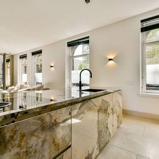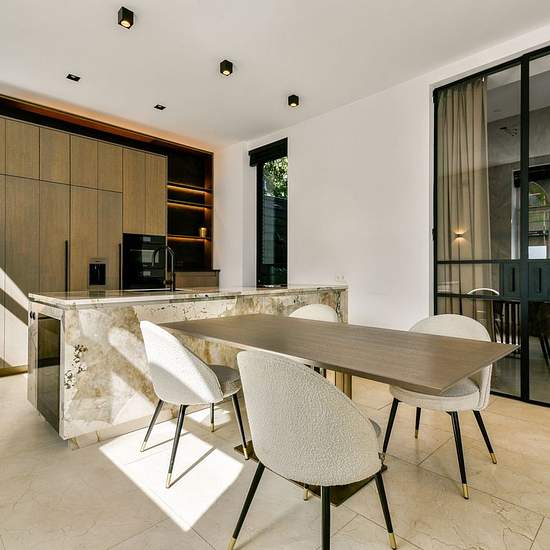 YES! Beautifully finished and fully furnished double ground-floor apartment with garden, designed by architect Marco van Veldhuizen. The property is multifunctional due to its mixed-1 zoning, which also makes it possible to use the object (partly) as commercial space. The home is stylishly finished with high-quality materials such as Crema Marfil natural stone floors, custom-made Alphenberg leather cabinets, and a perfect layout with plenty of natural light and large windows. The entire home has comfortable underfloor heating and has energy ...