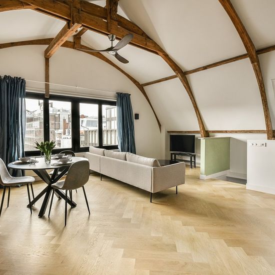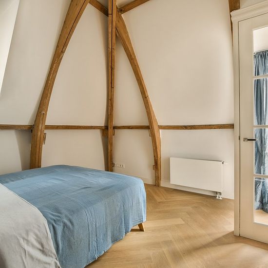 *ENGLISH TRANSLATION BELOW* In een statig herenhuis bieden we dit volledig luxe gerenoveerde appartement aan met drie slaapkamers op een fantastische locatie! INDELING Via de gemeenschappelijke entree bereikt men de eigen ingang van het appartement op de derde verdieping. De interne trap leidt naar de woonkamer met hoog plafond met zicht op de spanten kapconstructie. De open keuken is voorzien van PITT cooking (5 pits), afzuigkap, oven, vaatwasser, koffieautomaat en koel-/vrieskast. Aan de voorzijde zijn er drie slaapkamers. Twee slaapkamers...