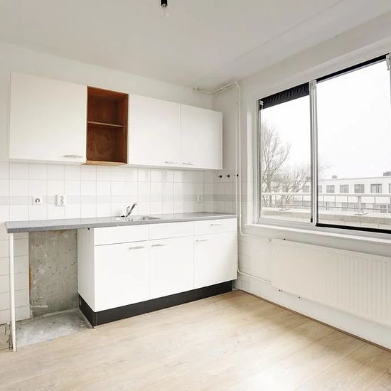 DESCRIPTION GREAT HOME! Spacious 4-room apartment of approximately 107m2 spread over two floors with a balcony! SURROUNDINGS: From this quiet part of Amsterdam (Amsterdam East/Zeeburg) you can be in the heart of the city center in no time. But for trendy spots, you don’t even have to go far; Amsterdam East is hip & happening! For recreation, you can visit Oosterpark and Flevopark. LAYOUT: Take the elevator to the fifth floor; entrance, the closed kitchen equipped with a standard kitchen unit at the front, at the rear the living room with ac...