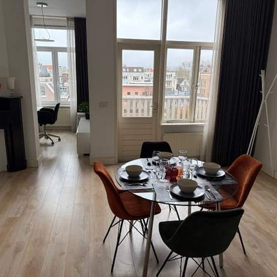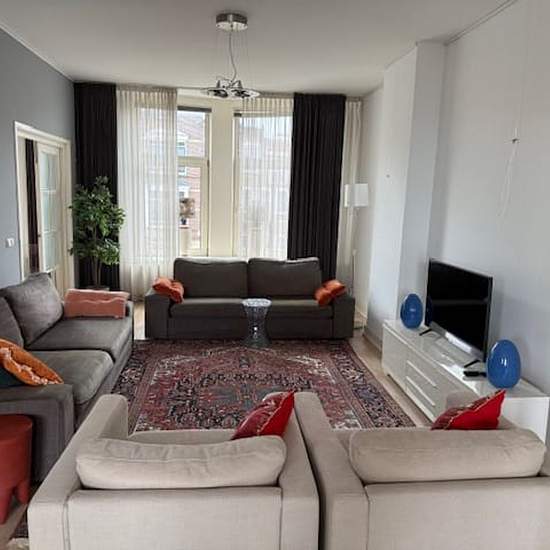 FOR RENT: Fully furnished 4-room/2-bedroom short-stay apartment centrally located between Avenue Concordia and Hoflaan in Kralingen, Rotterdam. The apartment is situated on the 2nd and 3rd floors and also has a lovely roof terrace to enjoy the sun. Kralingen is known among young and old as a hip international neighborhood full of charm and conviviality. It is within a very convenient distance of Erasmus University and about a 10-minute bike ride from Rotterdam city centre. There are several pleasant shopping streets with delicatessen shops, ...