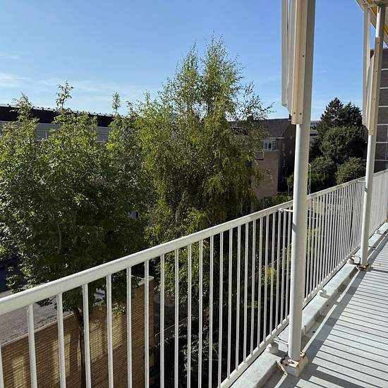 4RENT! Ruim 4-kamer appartement van 100m2 met vrij uitzicht vanaf het zonnige balkon! WOONCOMFORT Het appartement beschikt over een ruime woonkamer met en-suite naar de eetkamer, moderne keuken, 2 slaapkamers en onlangs gerenoveerde badkamer. Indeling: Afgesloten hoofdentree. Trap naar 2e verdieping. Ruime U-vormige hal. Lichte woon-/eetkamer met originele separatie, houten vloer en toegang tot het zonnige balkon aan de achterzijde (Zuid/Oost) met 2 vaste kasten. Nieuwe luxe open keuken voorzien van diverse inbouwapparatuur, oven, koelkast, ...