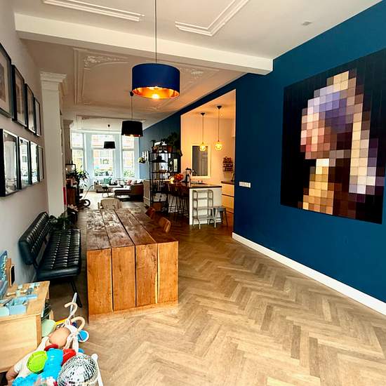 Stylish Fully Furnished 3-Bedroom Home (120m²) with Garden in Popular Bezuidenhout – Available June 1st Located on Adelheidstraat, in the highly sought-after Bezuidenhout district of The Hague, this beautifully renovated and fully furnished 120m² home offers modern comfort, generous living space, and an excellent location just steps away from Theresiastraat and close to The Hague Central Station. The property features a bright and spacious living room with elegant parquet flooring and contemporary furnishings. The modern open-plan kitchen is...