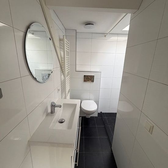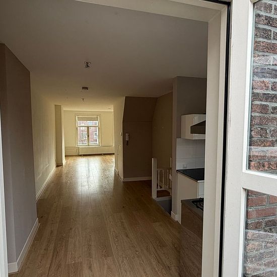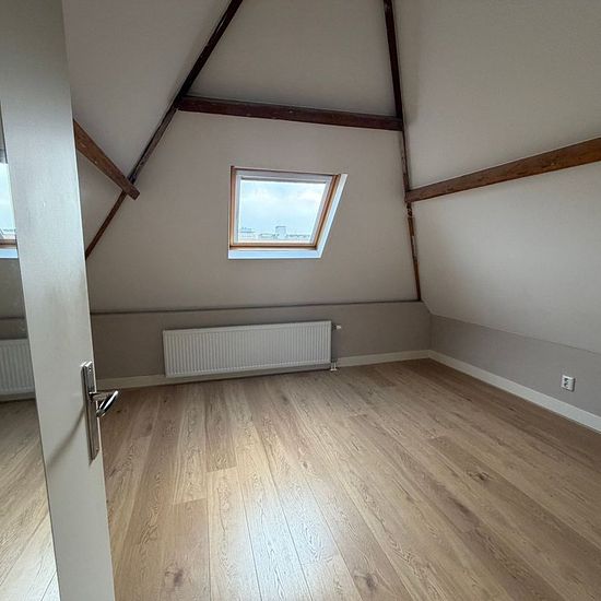 Nice duplex apartment of approximately 75m2 located on the edge of The Hague city center. The apartment was renovated around 2015 and has an energy label A. View of the Veenkade, large balcony, and 2 bedrooms in the attic floor.