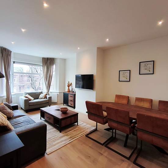 Furnished top-floor apartment with 3 bedrooms, energy label A, in excellent condition. Located on a lovely avenue in Voorburg, within walking distance of Den Haag Laan van NOI train station, tram line 2, the Koningin Julianaplein shopping center and ’t Loo park. Available immediately, minimum rental period 12 months. Layout Open stairway to the 1st floor. Behind the front door an entrance hall with stairs to the 2nd floor. Second floor L-shaped hall giving access to all rooms and fitted with a skylight. Living room of approx. 23 m² at the ...