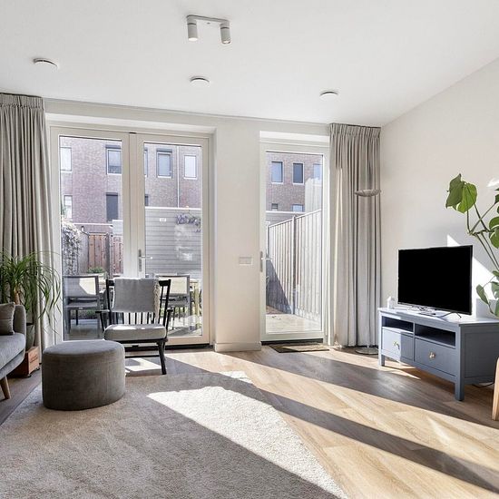 Gloednieuw, gasloos en energielabel A+++ , in de nieuwe woonwijk BLEND BREDA is deze gemeubileerde woni9ng beschikbaar voor een periode van 3 jaar. Begane grond: entree, hal met apart toilet en ruimte met warmtepomp, een leefruimte van ca. 40m2 bestaande uit de woonkamer en compleet ingerichte keuken v.v. alle apparatuur. Vanuit de kamer is de tuin bereikbaar, gelegen op het zuid-westen en stenen schuur en achterom. Eerste verdieping: ruime slaapkamer, badkamer met inloopdouche, wastafel met meubel en tweede toilet, en een inpandige bergin...
