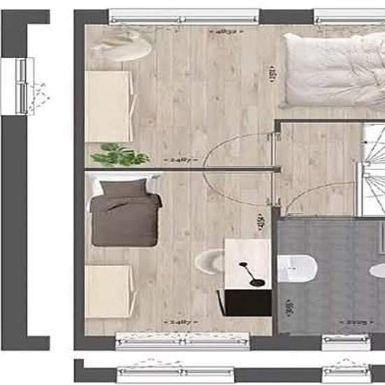 House Langlaar in Eindhoven The link is in the comment In the hallway to your right you see three doors and the stairs. The first door provides access to the technical room. The second door leads to the meter cupboard and the third leads to the toilet (of course wall-hung and with a small hand basin). From here you walk into the living room. A pleasant, bright space with a door to the private terrace of 20 m2. This property also has space to sit outside both at the front and at the back. From here the view is greener than green — no neighb...
