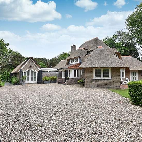 Aan de rand van Laren gelegen romantisch, goed onderhouden rietgedekt (nieuwe rieten kap) landhuis met berging, groot zonneterras en royale tuin rondom met zeer veel privacy. De oprit met voorterrein biedt voldoende parkeergelegenheid en is af te sluiten door een elektrisch bedienbare poort. Het landhuis (Gemeentelijk Monument) is in 1925 ontworpen door architect Rebel en recent van binnen geheel op strakke wijze gemoderniseerd, waardoor een hoog niveau aan wooncomfort met een luxe uitstraling is ontstaan. Voor een monument wordt doorgaans g...