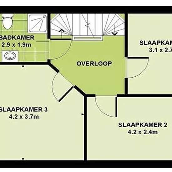 House Tovermolen in Eindhoven The link is in the comment The ground floor consists of an entrance hall with a meter cupboard, toilet and access to the staircase. From the entrance there is access to the living room, which is connected to the dining room. Adjacent is the kitchen, which is accessible from the dining room and is fitted with a fixed layout. On the first floor the landing provides access to three bedrooms and the bathroom. The bathroom is fitted with a bathtub, shower, toilet and washbasin. All rooms are accessible from the lan...