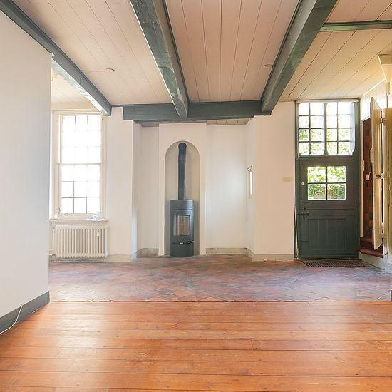 Royal semi-detached, former steward's house with large garden in the historic center of Noordwijk. Layout The property consists of a stone front house — once the first stone house of Noordwijk — with a narrower stone rear house behind it and a wooden attached storage room. The house has all living facilities on the ground floor. On the first floor there are three bedrooms and a bathroom. In the ridge of the front house, there is a spacious attic storage. Ground floor: Upon entering the stone front house through the entrance door on Voorstr...
