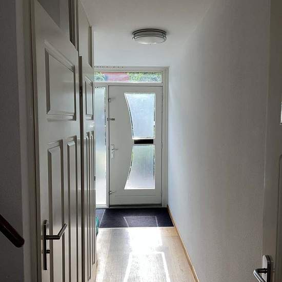 In a beautiful and quiet location, in a sought-after residential neighbourhood, a spacious house with 5 bedrooms. Layout Ground floor: entrance, hall with separate toilet, living room approx. 40 m2 with wooden floor and a semi-open kitchen equipped with all appliances and two built-in cupboards. From the living room there is access to a conservatory with roller shutters, directly adjacent to the low-maintenance, deep garden. A large brick storage shed is located in the garden and can be reached via a rear entrance. First floor: three bedro...