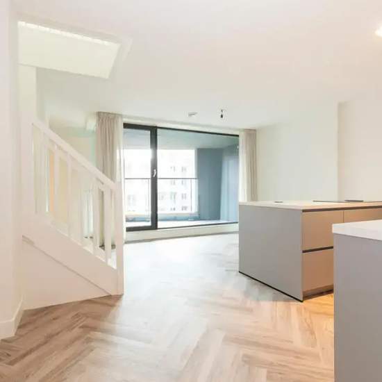 * AMAZING MAISONETTE FOR RENT IN THE UNIQUE VERTICAL BUILDING WITH GYM & GUEST ROOMS* Sloterdijk area has rapidly transformed from a business district into a diverse neighborhood with homes, innovative and creative companies, catering and other facilities. Stunning double apartment of approx 201 m2 for rent in the amazing VERTICAL building (2022) This unfurnished apartment is equipped with 3 bedrooms, 2 bathrooms (1 with bath), 1 home office, balcony, luxurious kitchen including island, a spacious living room of almost 70 m2, PVC floor heate...