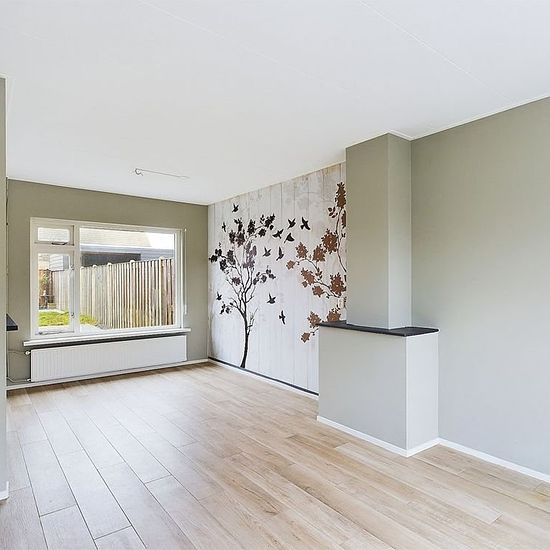 Nette instapklare eindwoning met 3 slaapkamers en een diepe zonnige tuin met berging te huur. De woning is centraal gelegen nabij de Belgische grens. Diverse voorzieningen zoals basisonderwijs, supermarkten en sportaccommodaties zijn op loopafstand aanwezig. Benieuwd? Neem contact met ons op. Inkomhal met meterkast, opgaande trap en toiletruimte. Woonkamer met nette pvc vloer en half open keuken. De keuken is recent gemoderniseerd en beschikt over inbouwapparatuur: 4 pits gasfornuis, afzuigkap, koelkast, oven en aansluiting voor de wasmachin...