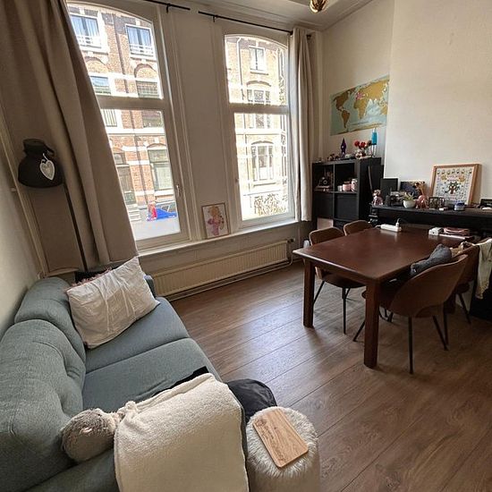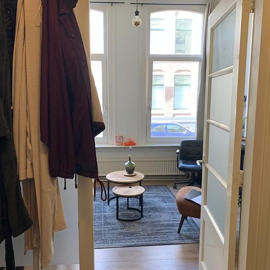 As of June 1st, a non-independent living space will become available on Dullertstraat in a charming townhouse located in the trendy and lively Spijkerkwartier. The apartment is just above street level (a small step up) and combines the comfort of a modern living space with the charm of a characteristic building. The living space consists of a bright living room of 13 m² with a high ceiling and ornamentation, and a separate bedroom of 8 m² with its own sink. You share the kitchen with 1 other resident, and the bathroom with 2 other residents...
