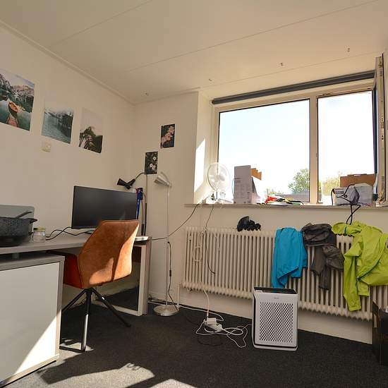 NICE STUDENT ROOM ON THE MAIN STREET IN EMMEN LOCATION The room is located very close to the centre of Emmen; within a few minutes' walk you are in the heart of the centre. Emmen's main station is a 5-minute walk away. A bus stop is also very close to the accommodation. FLOOR The room is located on the second floor. AREA The room has an area of approximately 13 m2. LAYOUT The room has enough space for a double bed, desk and wardrobe. The house is shared with 6 housemates. You will share the large living room of 43 m2, and the kitchen which f...