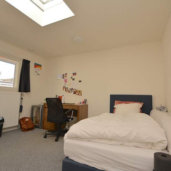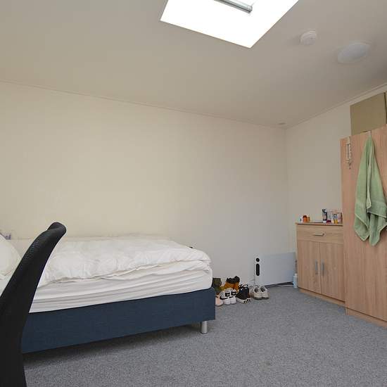 Nice student room on the main street in Emmen LOCATION The room is located very close to the center of Emmen; within a few minutes' walk you are in the middle of the center. Emmen's main station is a 5-minute walk away. The bus stop is also very close to the accommodation. SITUATION The room is situated on the first floor at the rear. AREA The room has an area of approximately 14 m². LAYOUT The room has enough space for a double bed, a desk and a wardrobe. The house is shared with 6 housemates. You will share the large living room of 43 m² a...