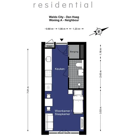 1 room rental homes in Laak, Den Haag cost on average €831 and are on average 23 m²